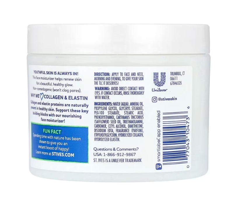 水、礦物油、丙二醇、甘油硬脂酸酯、PEG-100 硬脂酸酯、硬脂酸、苯氧乙醇、紅花籽油、三乙醇胺、卡波姆、鯨蠟醇、二甲硅油、乙二胺四乙酸二鈉、香料、乙基己基甘油、水解膠原蛋白、水解彈性蛋白。